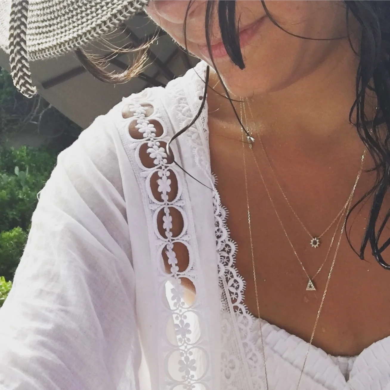 Necklace layering is nothing new - tribal adornment has long used multiple bead strands or selections of meaningful talismans to indicate a wearer’s wealth, position and relationship status. In a modern sense, the beauty of this method of neck decoration lies in the ease of creating multiple, entirely personal, looks. Simply adding a chain or lengthening a pendant can dramatically alter the overall effect. As we head towards a season of tanned skin and swimwear, armed with a wardrobe of open-necked, lightweight pieces, what better time for a masterclass?